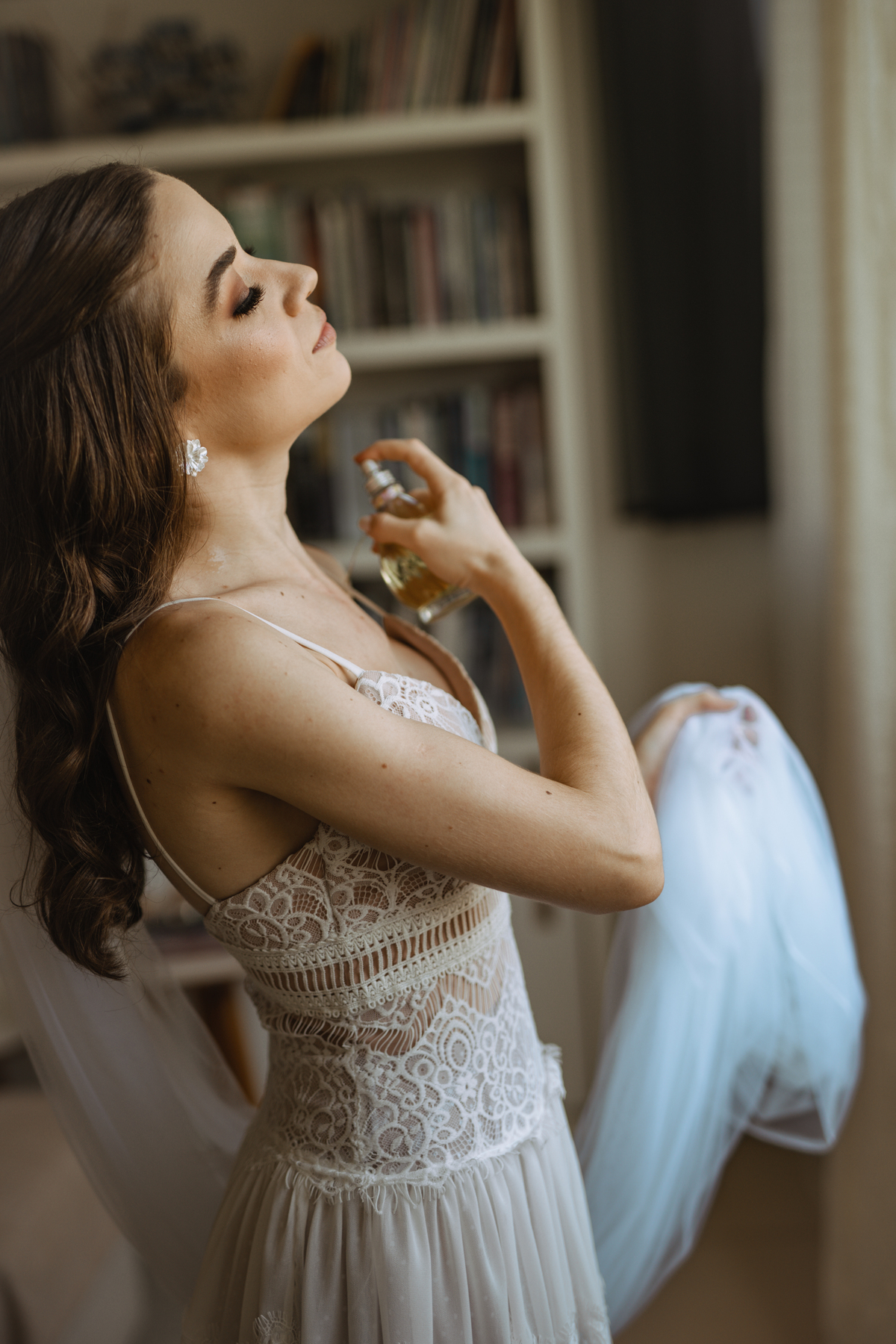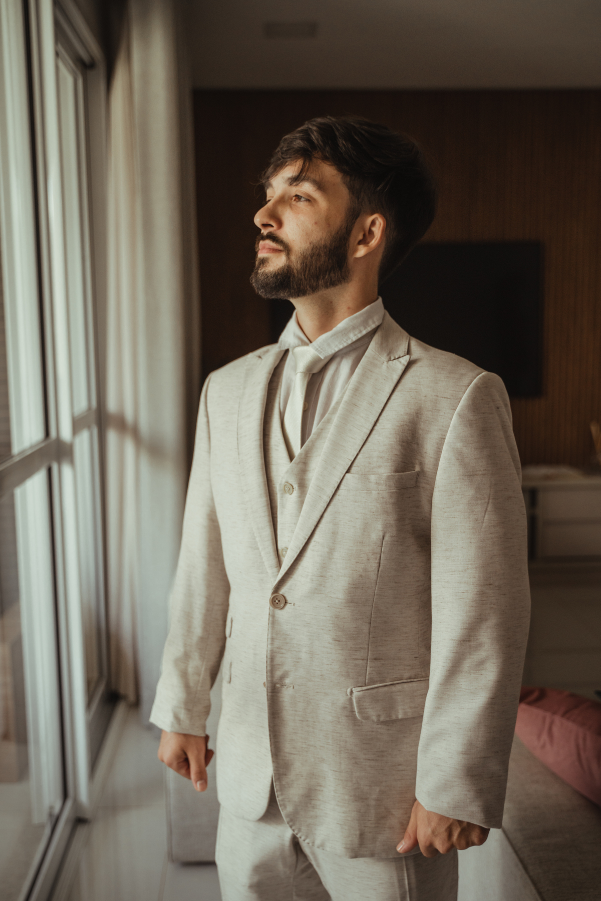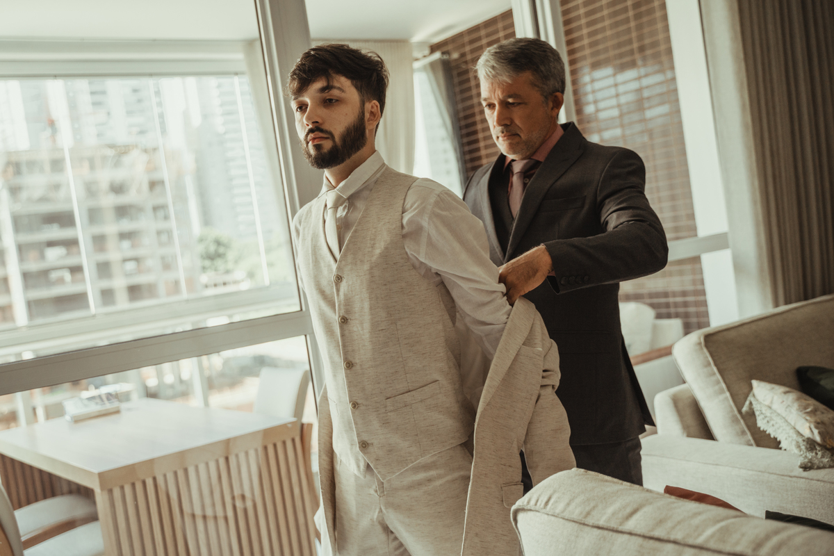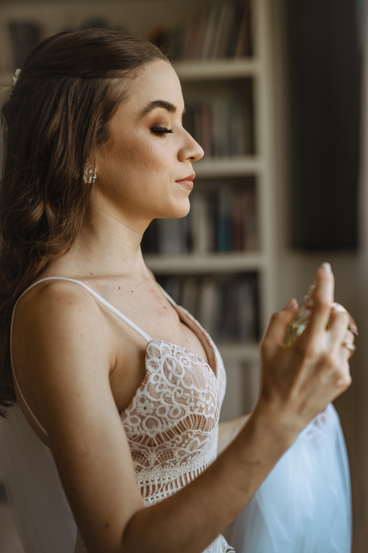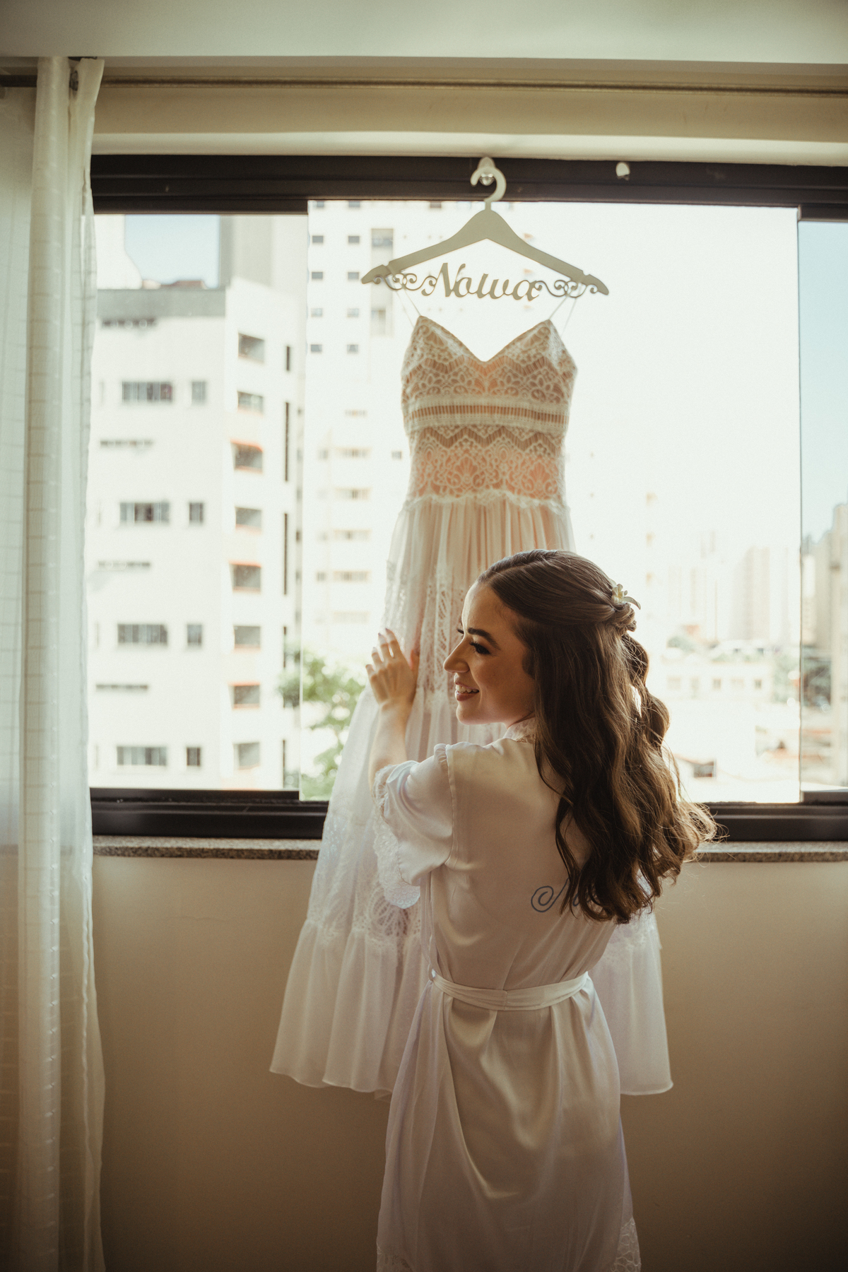 A Letícia escolheu se arrumar e passar seus últimos momentos de solteira, na casa dos seus pais, para onde depois desse dia, ela só voltaria sendo uma filha casada. É uma forma de registrar o lugar onde foi seu lar por tanto tempo sendo o cenário de um dos seus momentos mais importantes e lindos. Ela colocou na TV sua playlist de louvores bem baixinho, com sua mãe e irmãs tomaram um café na mesa, as meninas que maquiaram e arrumaram seu cabelo eram suas amigas e se deslocaram do salão até a casa dela... enquanto todas se arrumavam, o pai ficou no quarto escondidinho, logo que a Lê ficou pronta, eles fizeram um first look de pai e filha, as meninas todas choraram, claro! E teve participação de mais um membro da família, um de 4 patas kkk